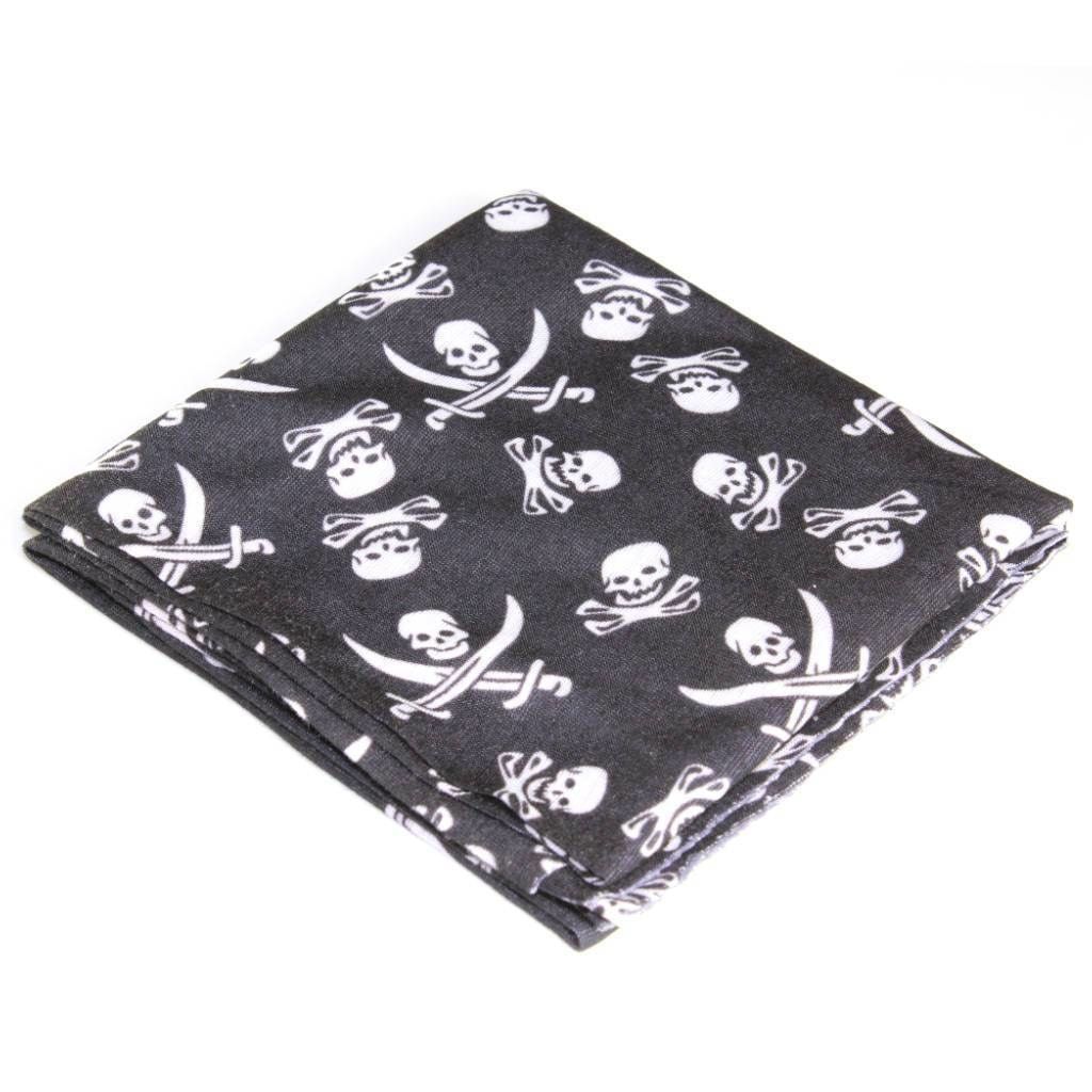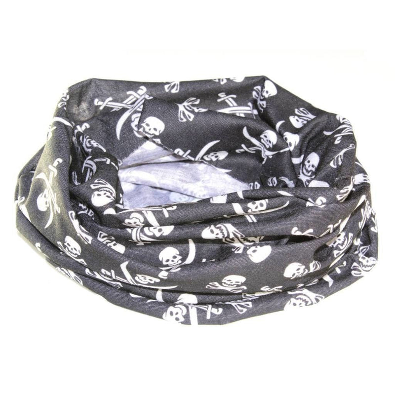 A comfortable and versatile magic bandana with a skull and crossbones pattern, which is stretchable and can be worn in various ways.