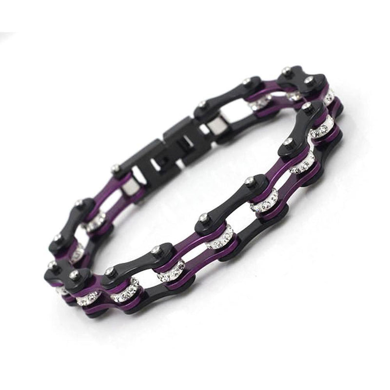 This sparkling ladies motorcycle bracelet, is made in stainless steel and set with cubic zirconias on each link, it is also decorated with purple ion plating.