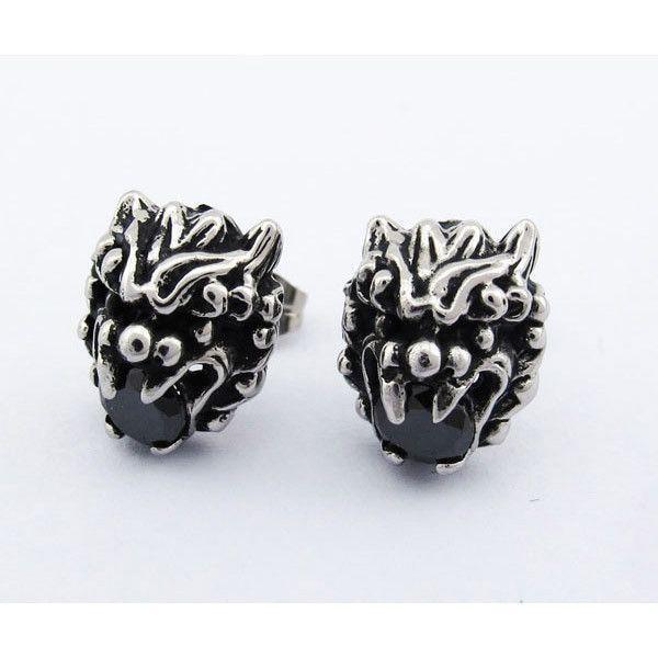 A pair of eye-catching stainless steel dragon head studs, with your choice of black or white stone within the dragon's mouth.