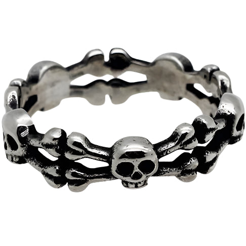 This awesome Skulls and Crossbones Ring is crafted from stainless steel for a unique and bold look. Composed of a repeated classic skull and crossbones emblem, this ring is perfect for bikers and gothic lovers alike. Personalize your style with this timeless design.
