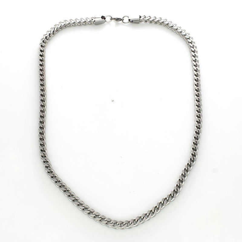 A stylishm stainless steel, square wheat link chain, measuring 6mm in width. This chain is perfect on its own, or combined with a pendant for a fresh look to your jewellery.