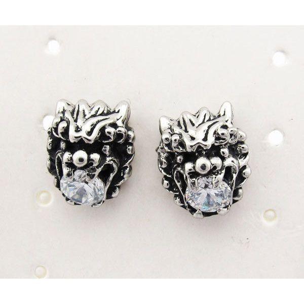 A pair of eye-catching stainless steel dragon head studs, with your choice of black or white stone within the dragon's mouth.