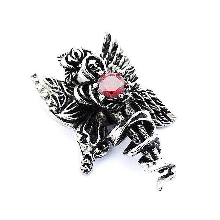 A lovely fantasy pendant of a butterfly fairy holding a red gemstone, this style is highly detailed and made in stainless steel.