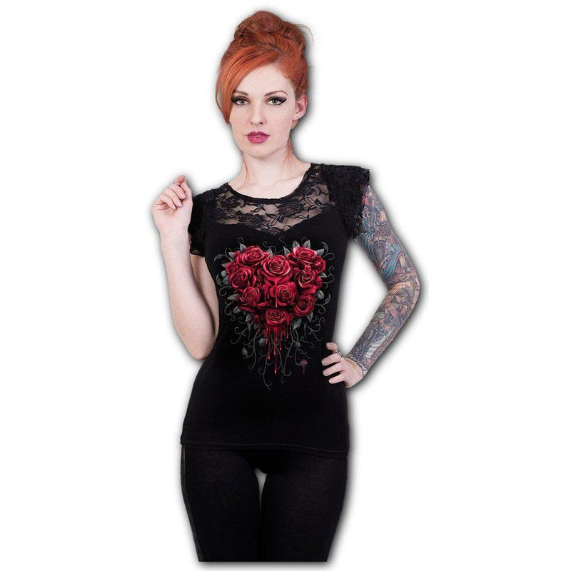 This is an amazing ladies top from Spiral Clothing, with a bleeding heart roses design.