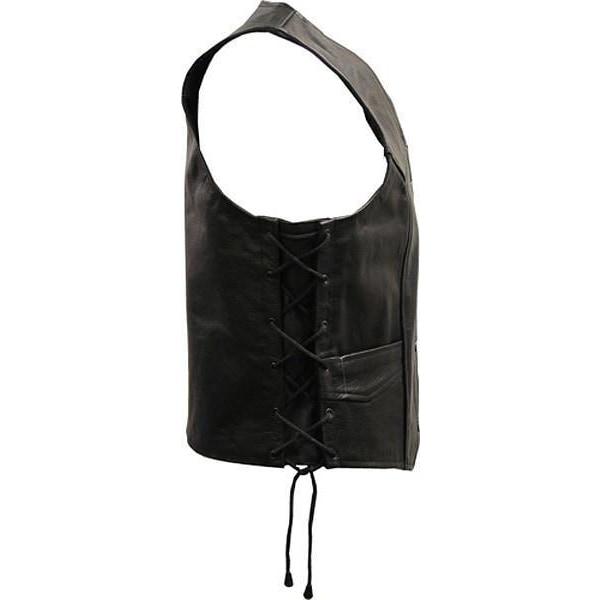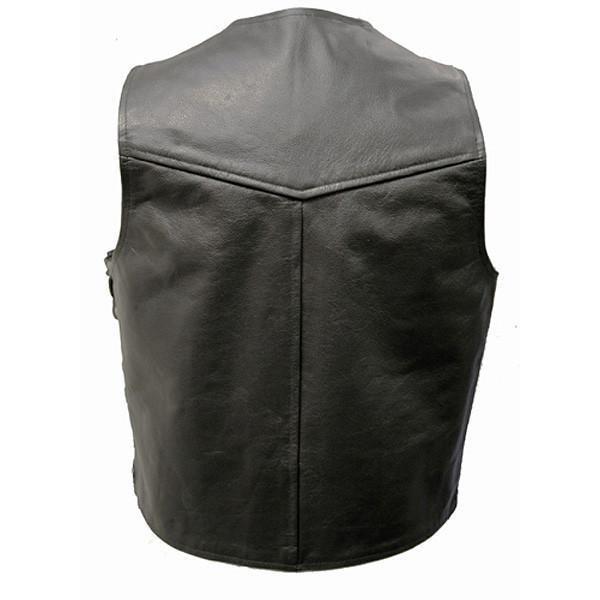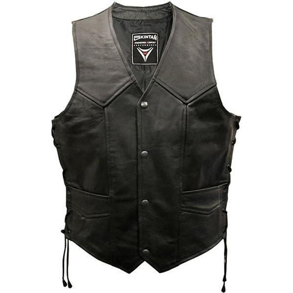 If you are looking for something simple and stylish, then look no further than the Leather Lace Sided Biker Vest from Skintan Leather. Made from high quality genuine leather, with adjustable lace sides, one inner and two outer pockets and stud fastenings. If you love customising your leather, then you will love this as it is free from prints.