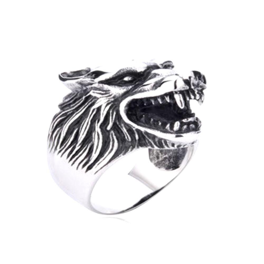 A substantial and intricately detailed biker ring with a ferocious wolf head design. This awesome style is made in stainless steel.