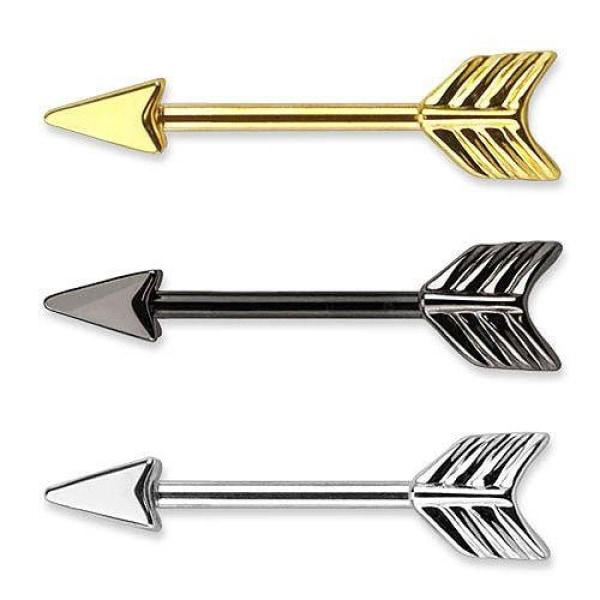 316L surgical steel arrow nipple bar. Thickness 14GA (1.6mm), length 1/2"(12mm).