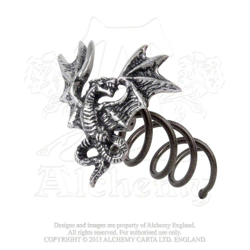 This gothic smoke dragon hair screw from Alchemy, has a fearsome dragon design, hand crafted from pewter.