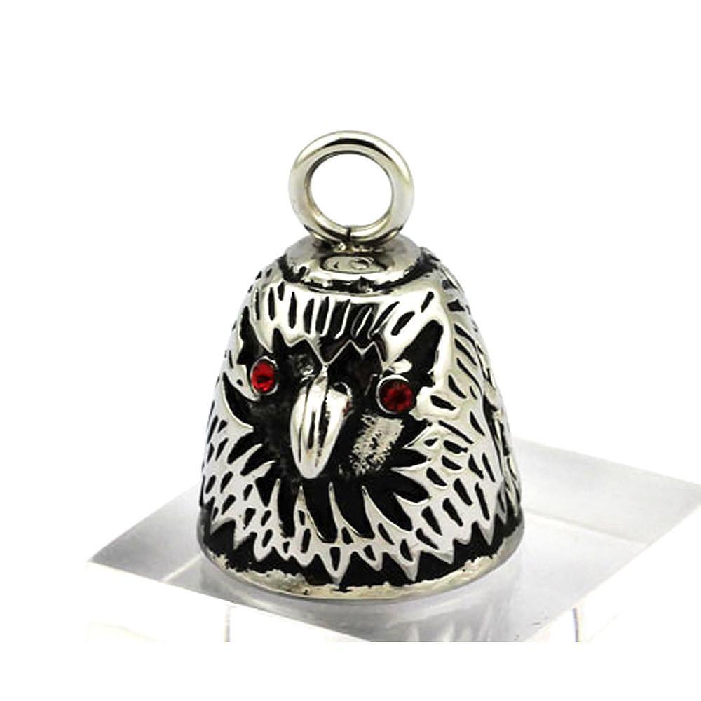 A superb biker bell made in stainless steel with a bird head design, set with red CZs in the eyes, it has a moving steel bell ringer inside.