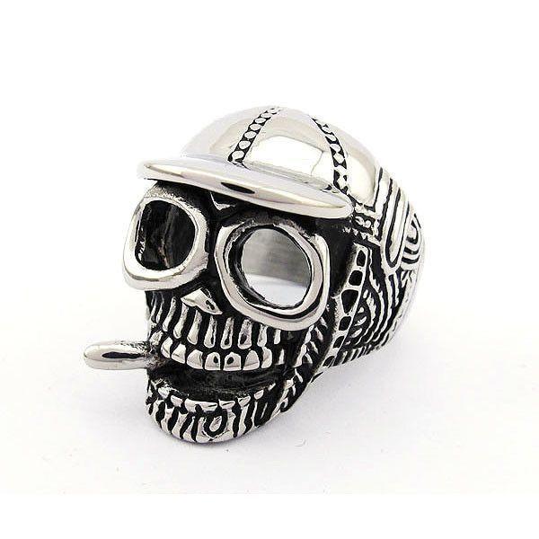 This skull ring has a very cool design, wearing a baseball cap and with a cigar in it's mouth. An excellent design made in surgical stainless steel.