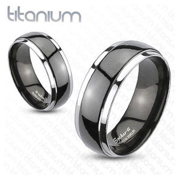 Court Dome Shaped Titanium Ring With Black Ion Plated Centre - 3034
