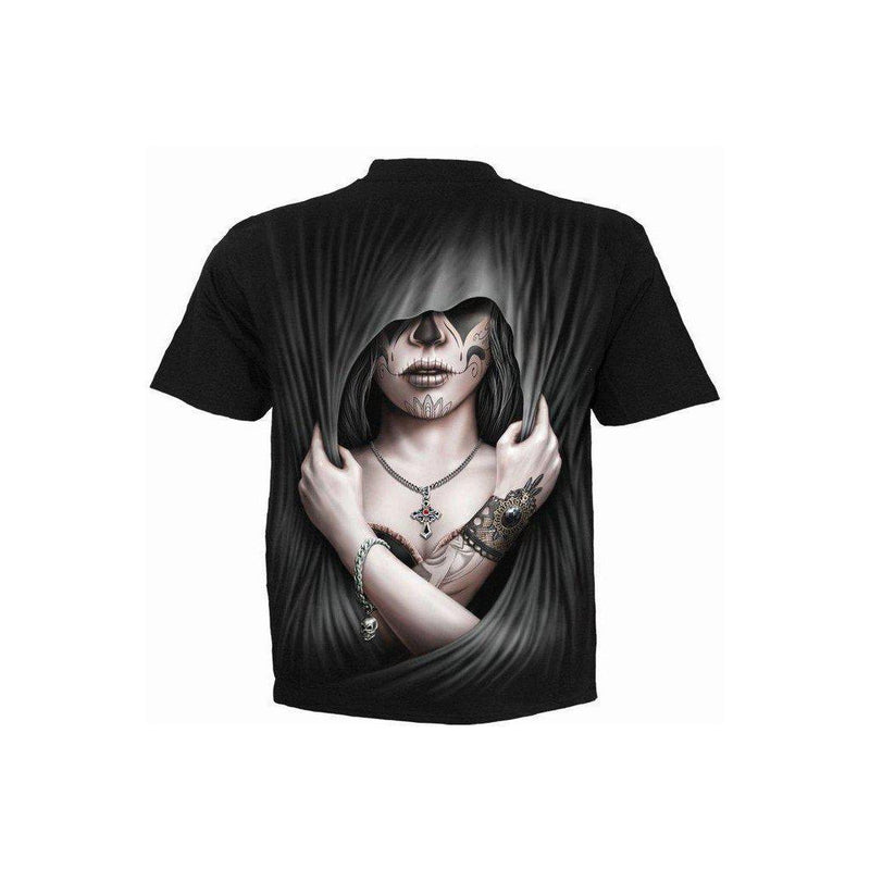 A horrorshow mens t-shirt with a bodacious front and back dead love themed print!