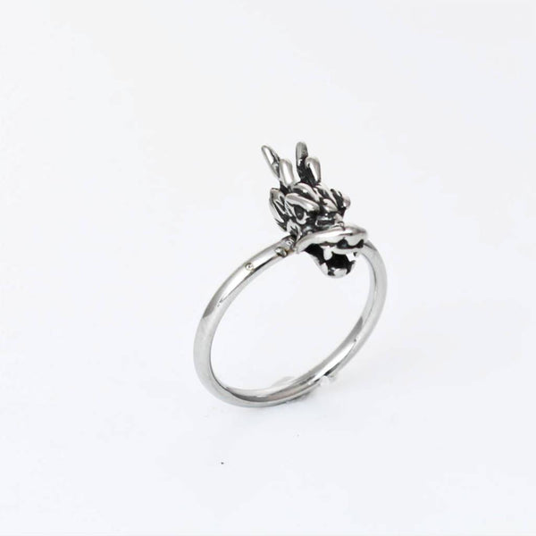 A badassical stainless steel ring with a dragon head design in small sizes, suitable for ladies or also ideal for a pinkie ring or small fingers.
