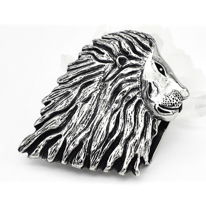 This is a superb biker belt buckle, with a detailed lion head design, crafted in stainless steel.