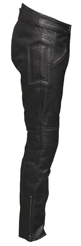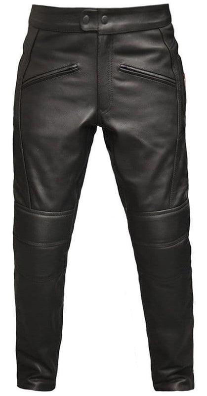 These magnificent black leather motorcycle trousers from Skintan, are crafted from a highly durable but supple top quality cowhide, which produces the superb comfort, whilst being very comfortable to wear. The quality leather is made to last the test of time.