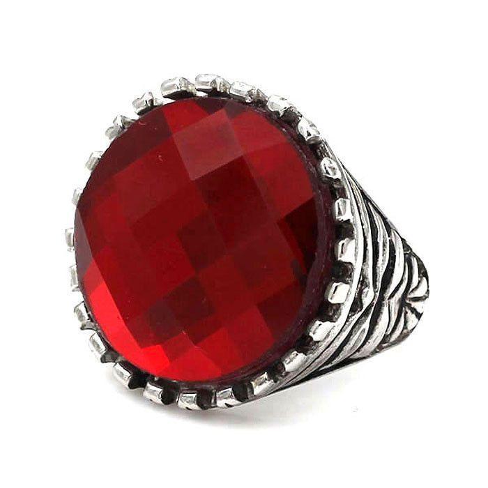 Get some bling on your fingers with this Red Gemstone Ring from Kalen. An eye-catching, chunky ring that is made in stainless steel and is set with a large round faceted red gemstone.