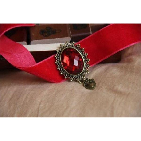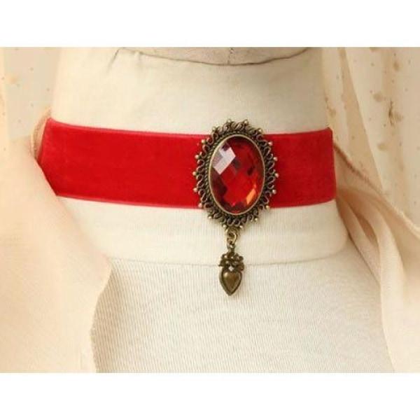 Red Gothic Choker Necklace With Central Gemstone and Heart Charm