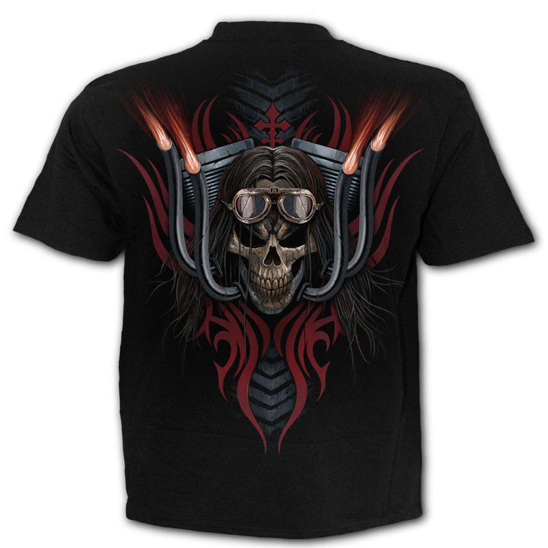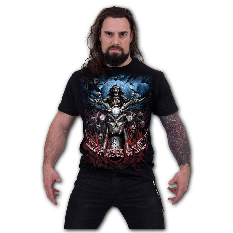 A superfly mens t-shirt with an amaze-balls front and back print of the repaer's free ride!