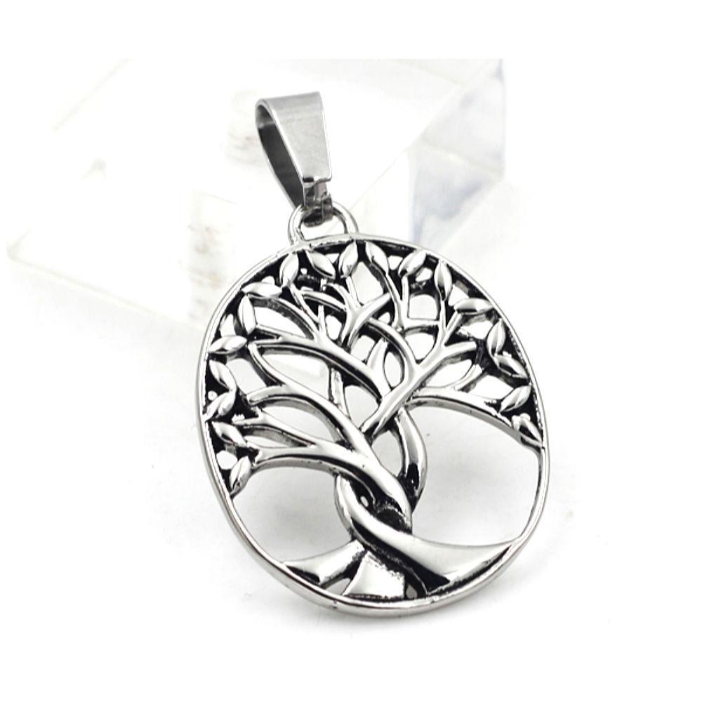 This stainless steel tree of life pendant is a classic style, with an interesting interweaving tree branches design.