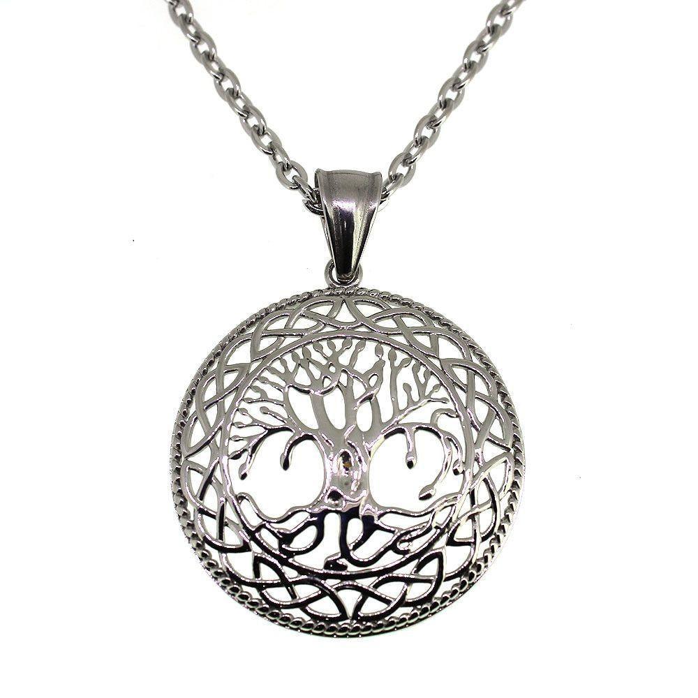 This beautiful intricate tree of life pendant has celtic knots around the outside of a captivating tree design, it is superbly crafted in stainless steel.