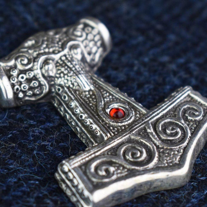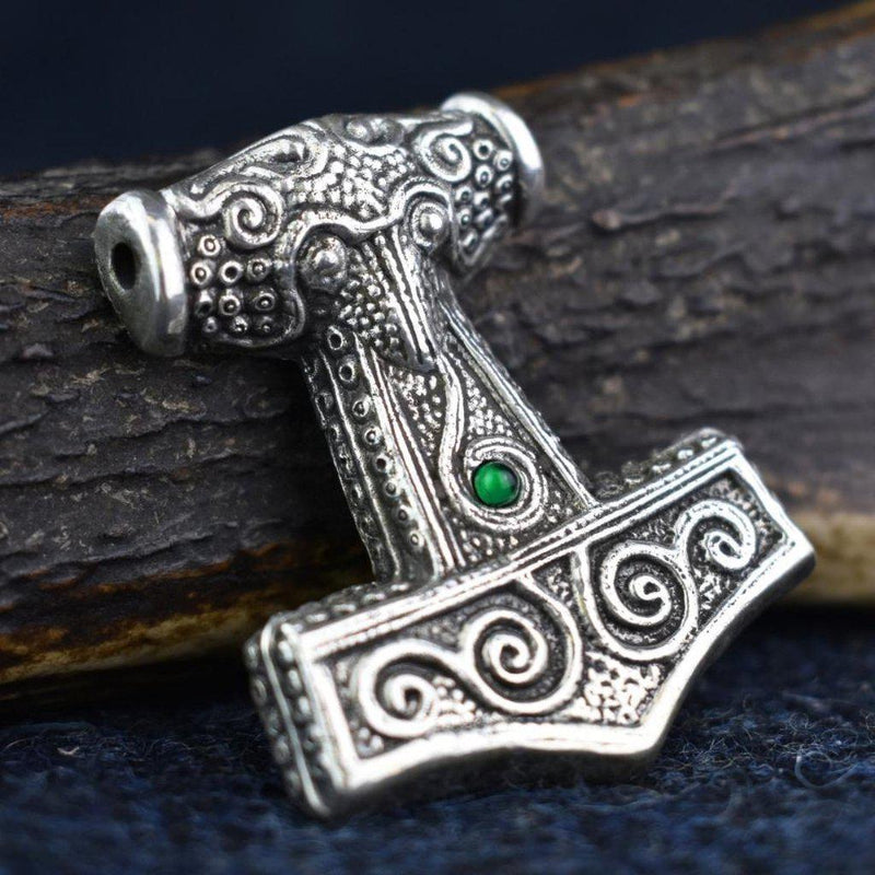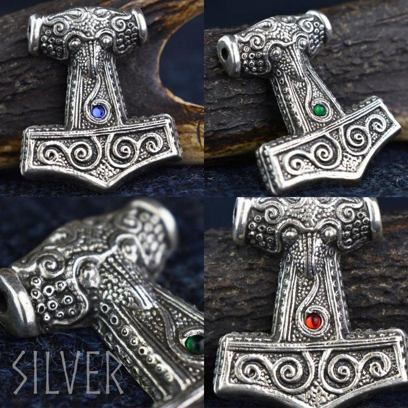 This is an epic sterling silver Mjolnir pendant from Asgard, based on a traditional Viking style, with an intricately detailed Thor's Hammer design. The pendant is set on a black leather string and comes with a gift box.